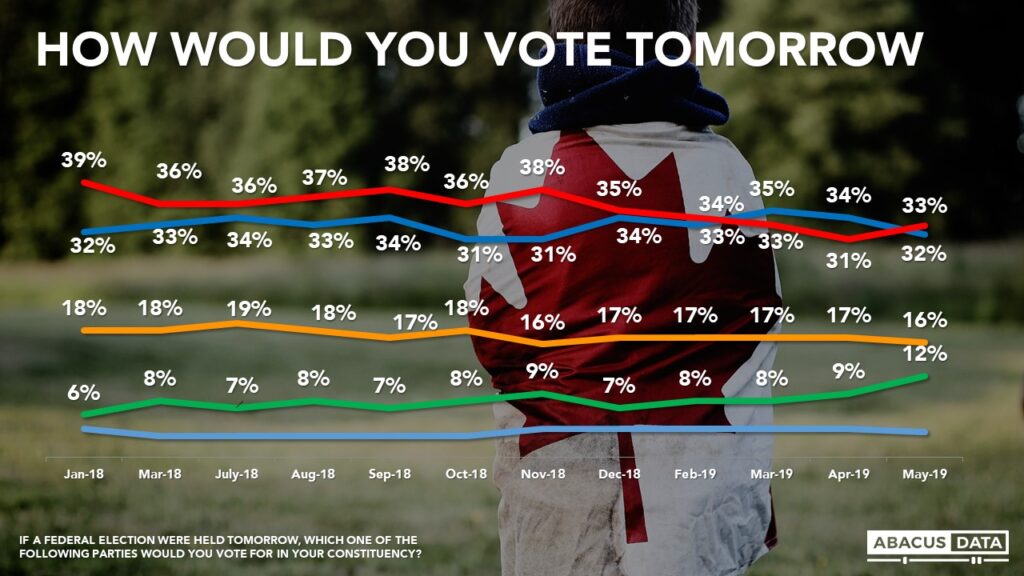 This week, we completed a nationally representative survey of 1,500 Canadians and explored their views on Canadian politics to update our regularly tracking. Early next week we will release an in-depth analysis of the Green Party’s rise and surrounding implications. For now, here’s our view of the federal political landscape: DIRECTION OF THE COUNTRY By … Continue reading Liberals and Conservatives neck and neck as Greens rise to 12%